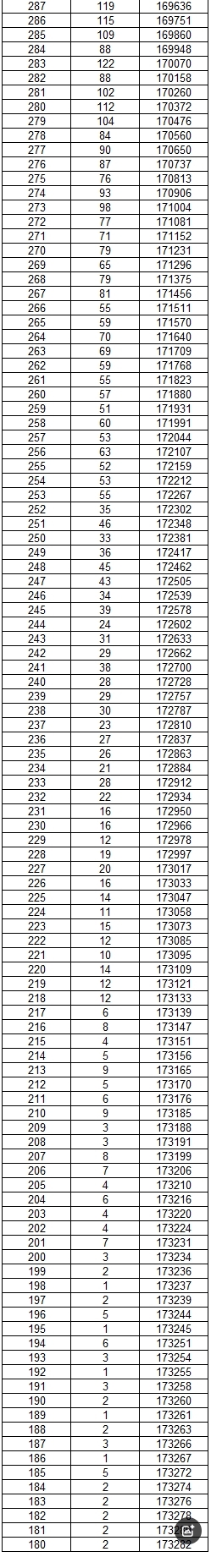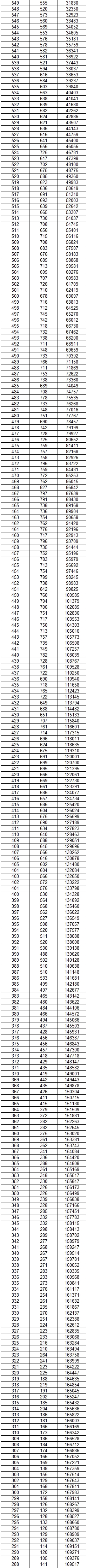 2025云南高考一分一段表 物理类分数位次对照表
