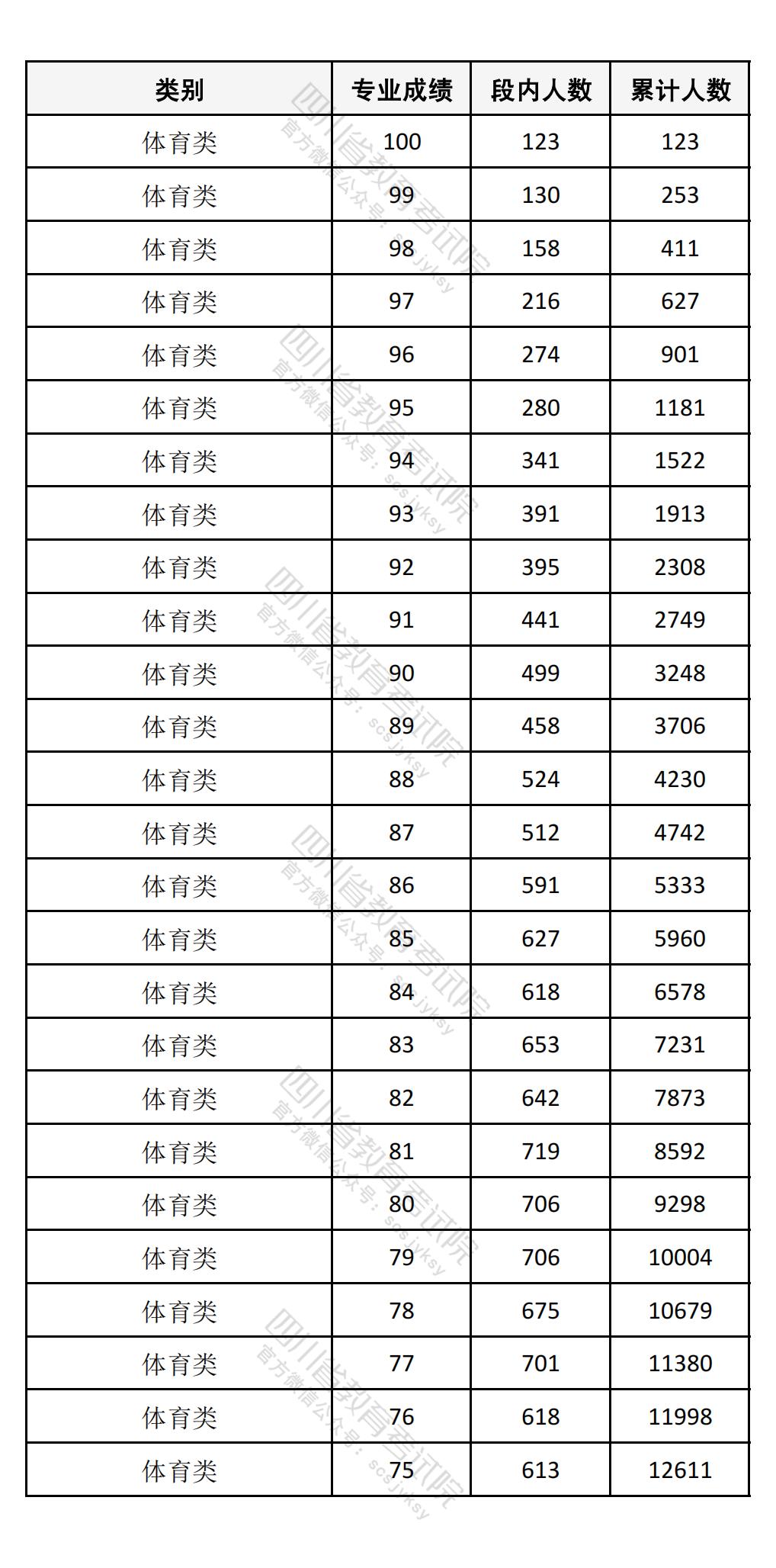 四川省2025年高考体育类专业成绩一分一段排名统计表