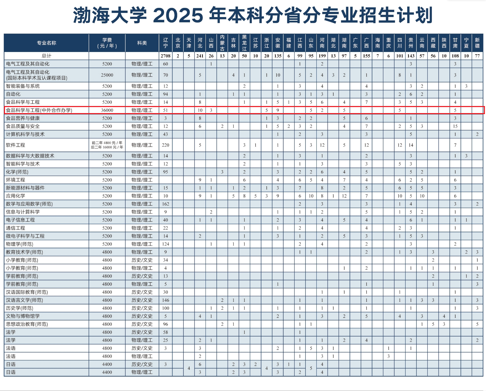 2025渤海大学中外合作办学招生计划及各专业招生人数