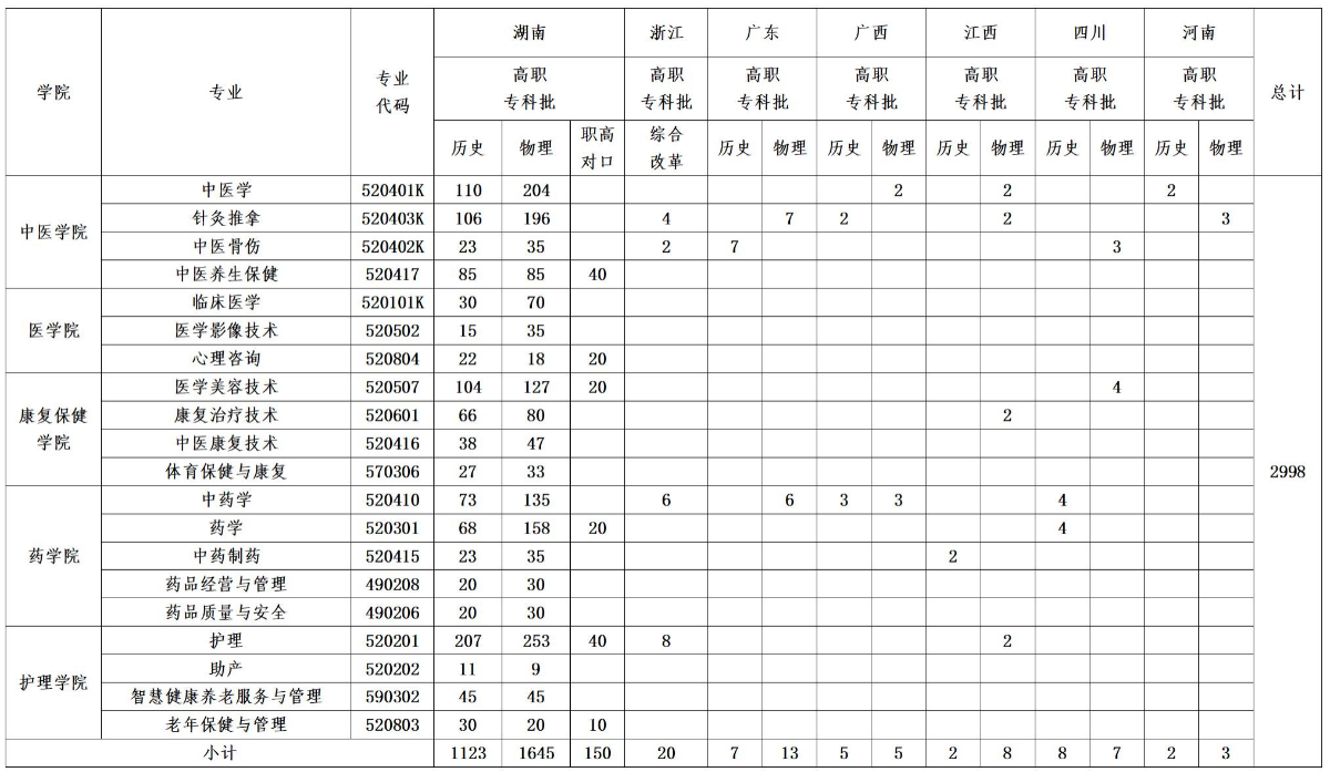 2025湖南中医药高等专科学校招生计划及各专业招生人数
