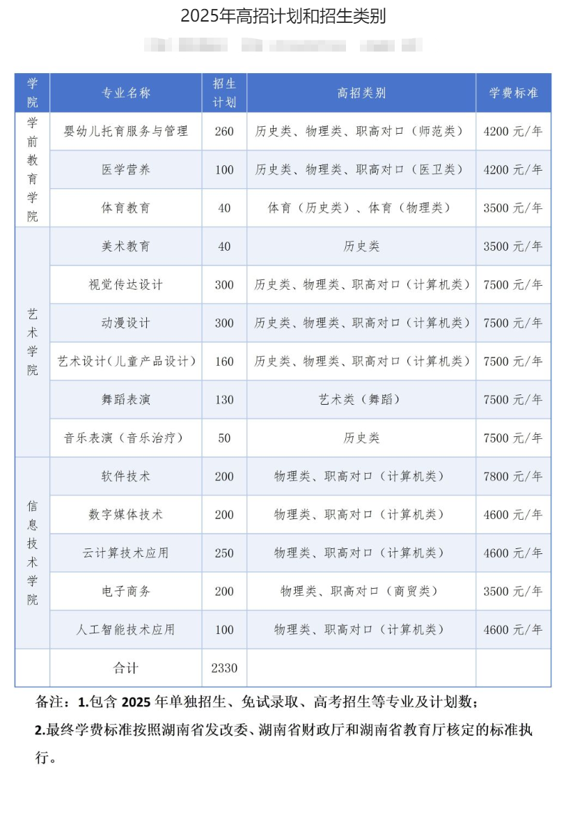 2025长沙幼儿师范高等专科学校招生计划及各专业招生人数