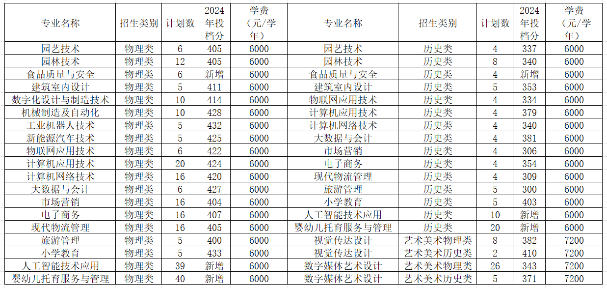 宁德职业技术学院2025年普通高考分省招生专业及计划