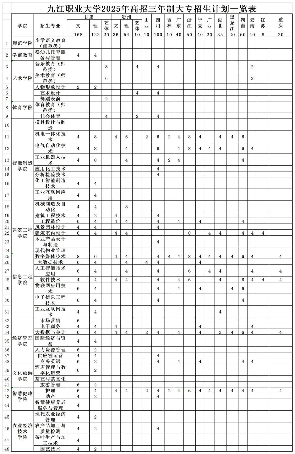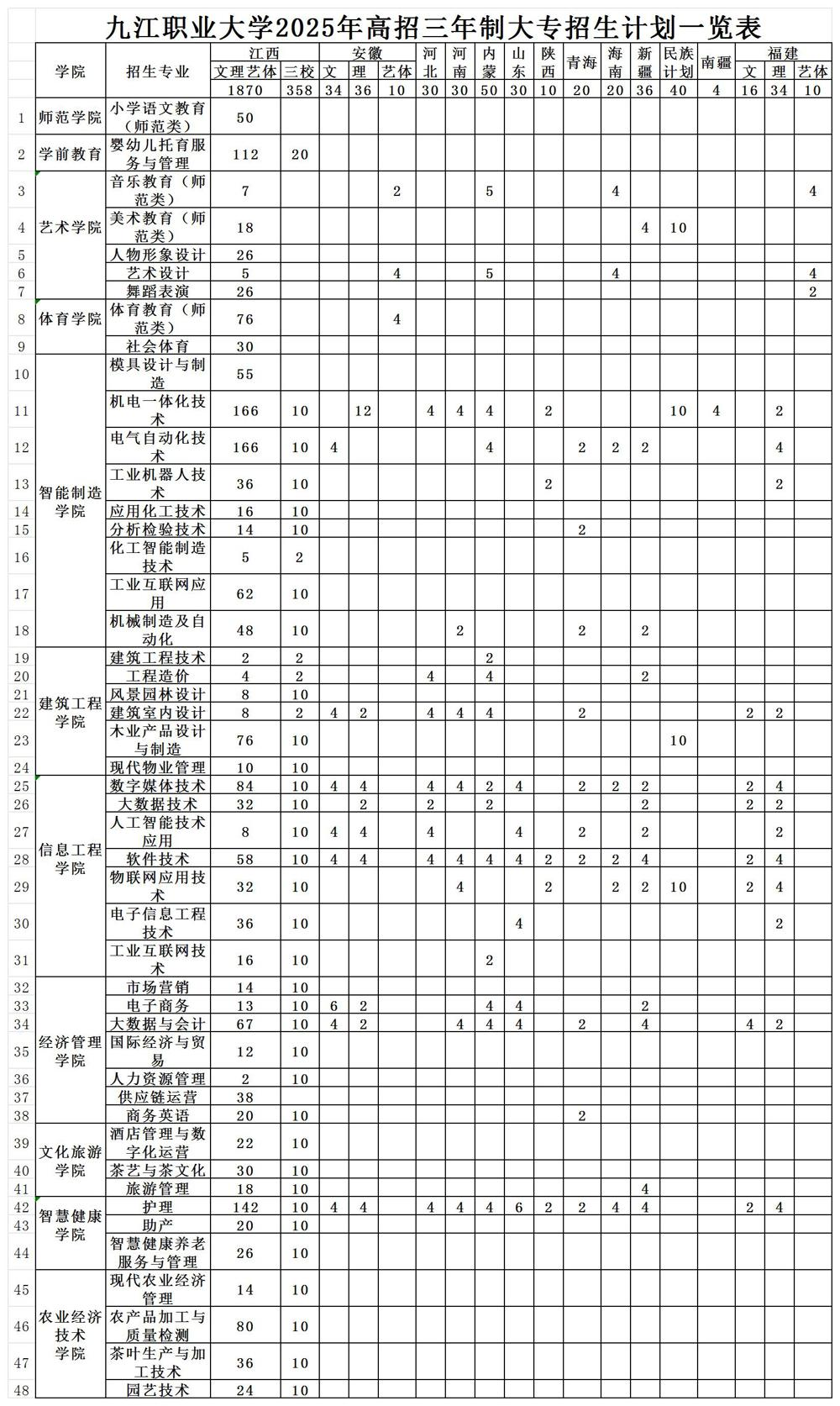 本文为大家整理的是九江职业大学2025年招生计划,主要包含招生专业、招生类别、各专业招生人数等信息,希望对大家有所帮助,如有变动或异议,请以各省市教育考试院或学校公布的信息为准。