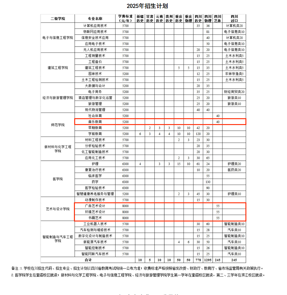 2025广安职业技术学院艺术类招生计划及各专业招生人数