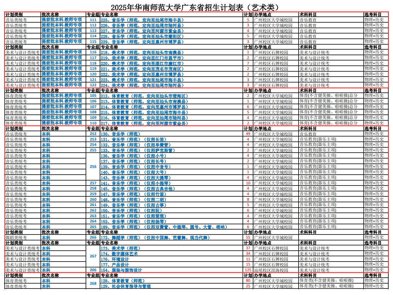 2025华南师范大学艺术类招生计划及各专业招生人数