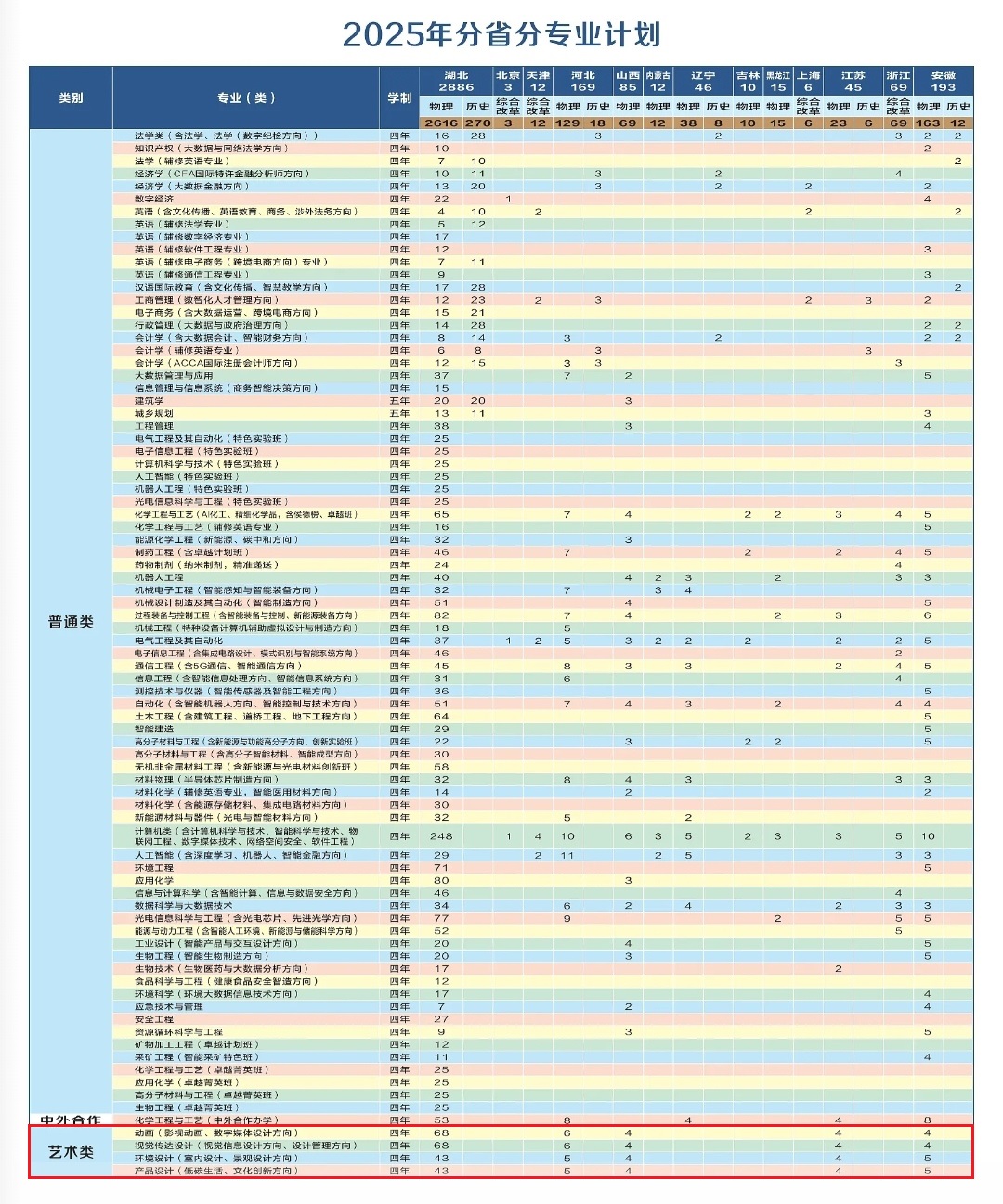 2025武汉工程大学艺术类招生计划及各专业招生人数