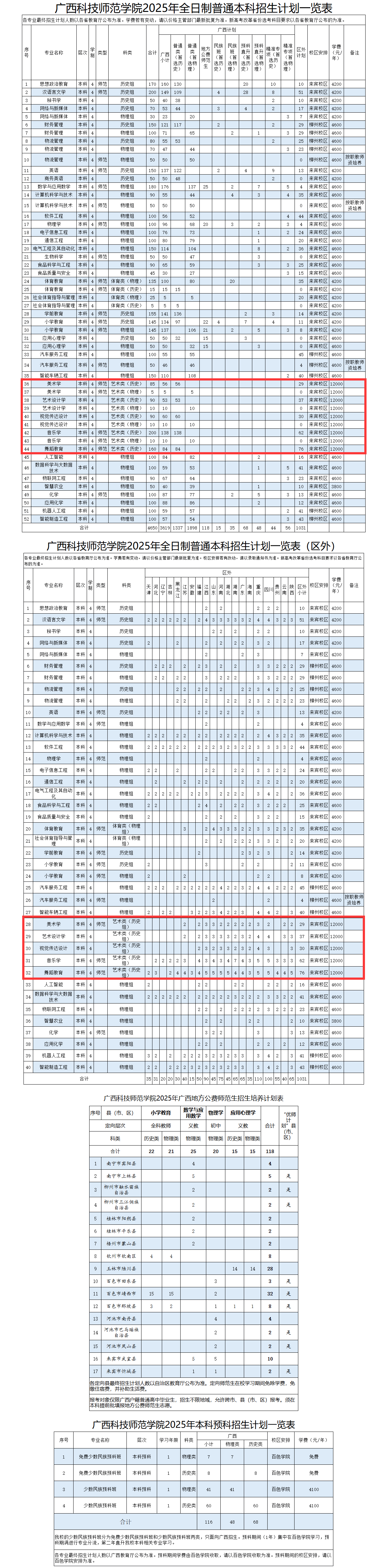 本文为大家整理的是广西科技师范学院2025年艺术类招生计划,主要包含招生专业、各专业招生人数等信息,希望对大家有所帮助,如有变动或异议,请以各省市教育考试院或学校公布的信息为准。