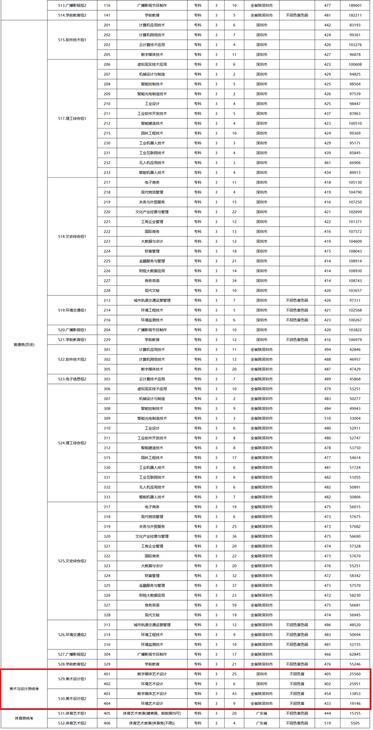 2025深圳信息职业技术大学艺术类招生计划及各专业招生人数