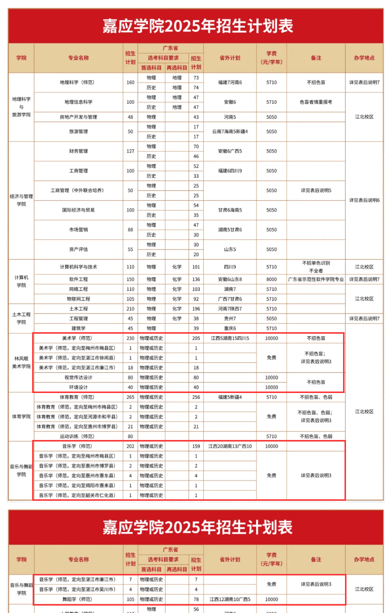 本文为大家整理的是嘉应学院2025年艺术类招生计划,主要包含招生专业、各专业招生人数等信息,希望对大家有所帮助,如有变动或异议,请以各省市教育考试院或学校公布的信息为准。