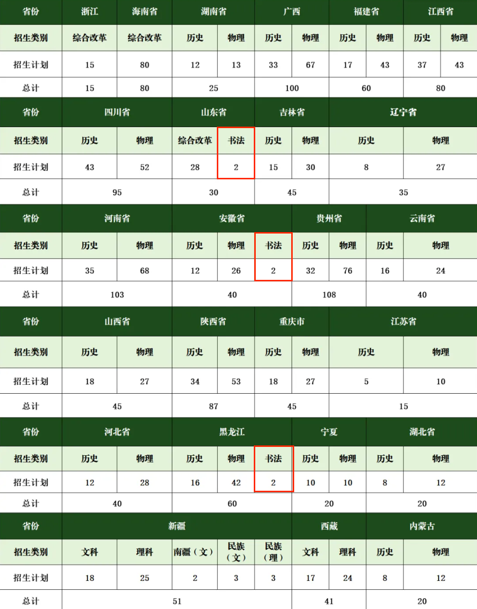 备注:2025年新增浙江省招生,以上招生信息以各省市(区)教育考试院公布为准。