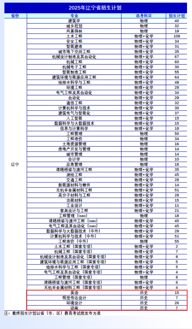 2025沈阳建筑大学艺术类招生计划及各专业招生人数