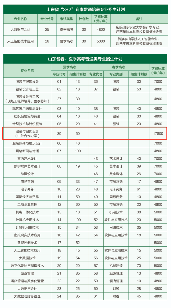 2025山东服装职业学院中外合作办学招生计划及各专业招生人数