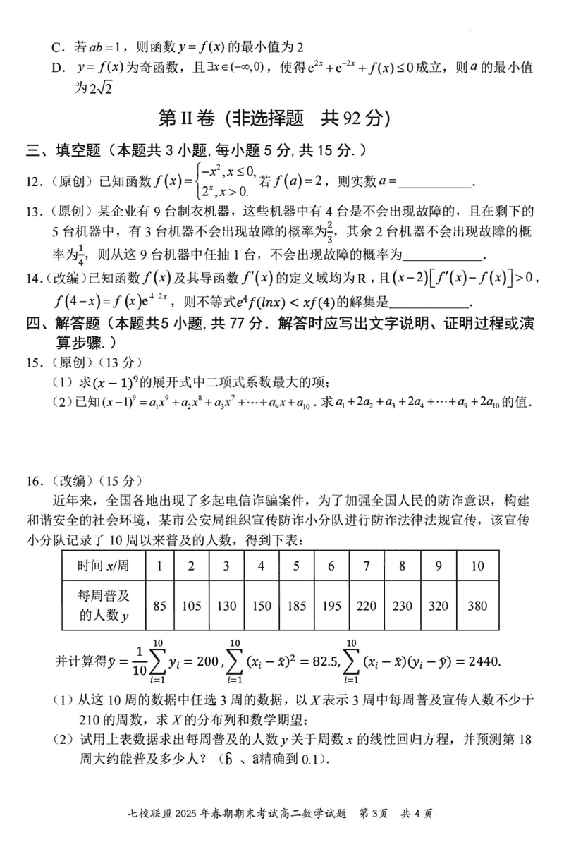 重庆市七校联盟2025年春期高二期末数学试题及答案 时间:2025-07-08 重庆 高中数学 重庆市七校联盟2025年春期高二年级期末考数学考试已于近日开考,为方便考生考后及时查看考试情况,查漏补缺、弥补不足,本文整理了试题答案解析相关信息! 数学试题及答案解析