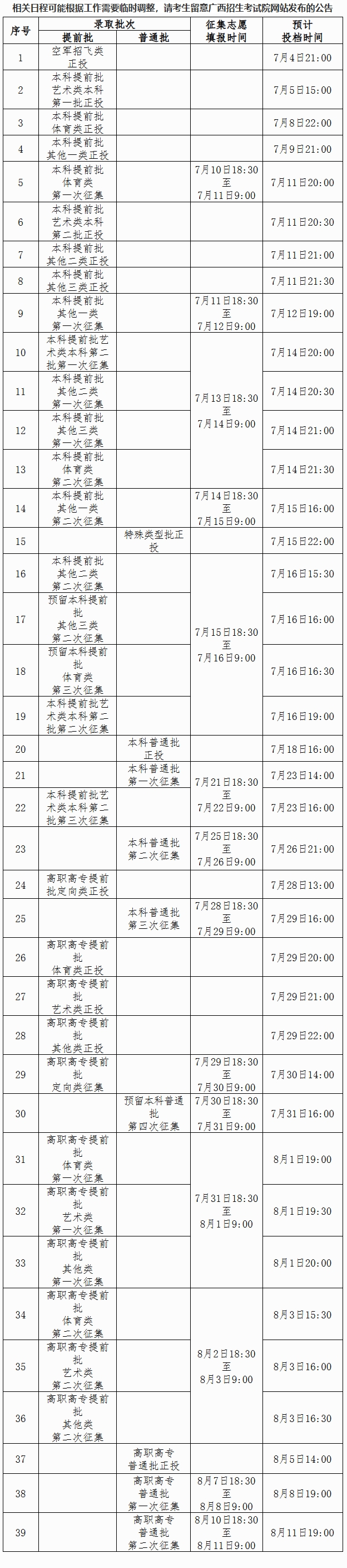 2025广西高考录取批次时间表出炉 附录取结果公布时间