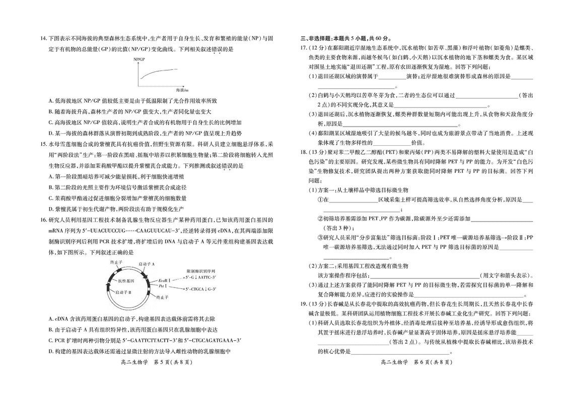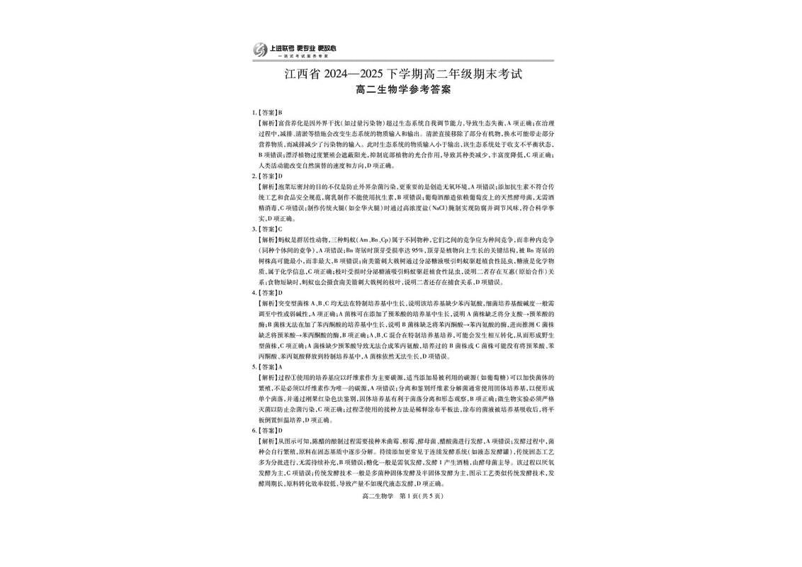 江西省上进联考2024-2025学年高二下学期6月期末生物试题及答案 时间:2025-07-08 江西 高中生物 江西省上进联考2024-2025学年高二下学期6月期末生物考试已于近日开考,为方便考生考后及时查看考试情况,查漏补缺、弥补不足,本文整理了试题答案解析相关信息! 生物试题及答案解析