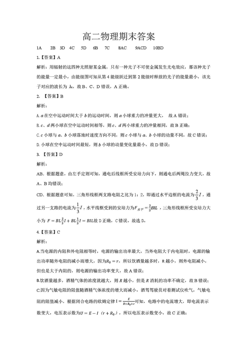 山西吕梁2024-2025学年高二第二学期期末物理试题及答案 时间:2025-07-08 山西 高中物理 山西省吕梁市2024-2025学年高二第二学期期末调研物理考试已于近日开考,为方便考生考后及时查看考试情况,查漏补缺、弥补不足,本文整理了试题答案解析相关信息! 物理试题及答案解析