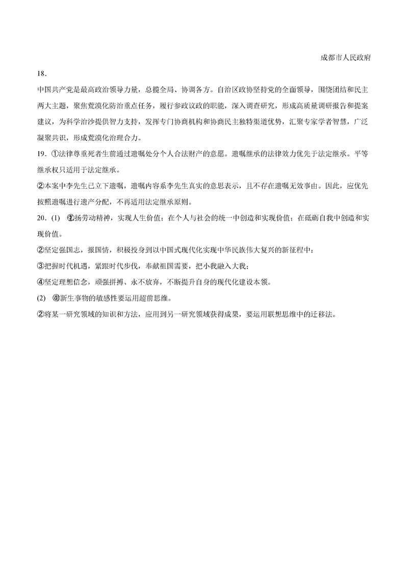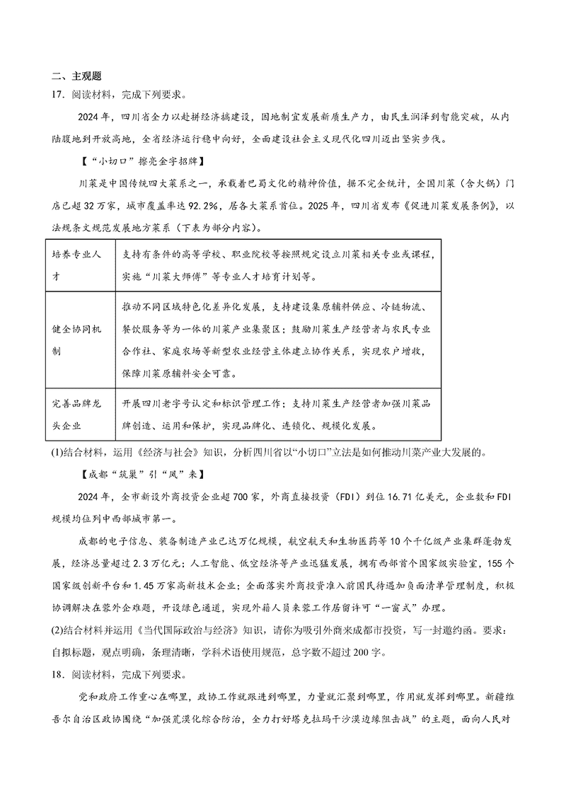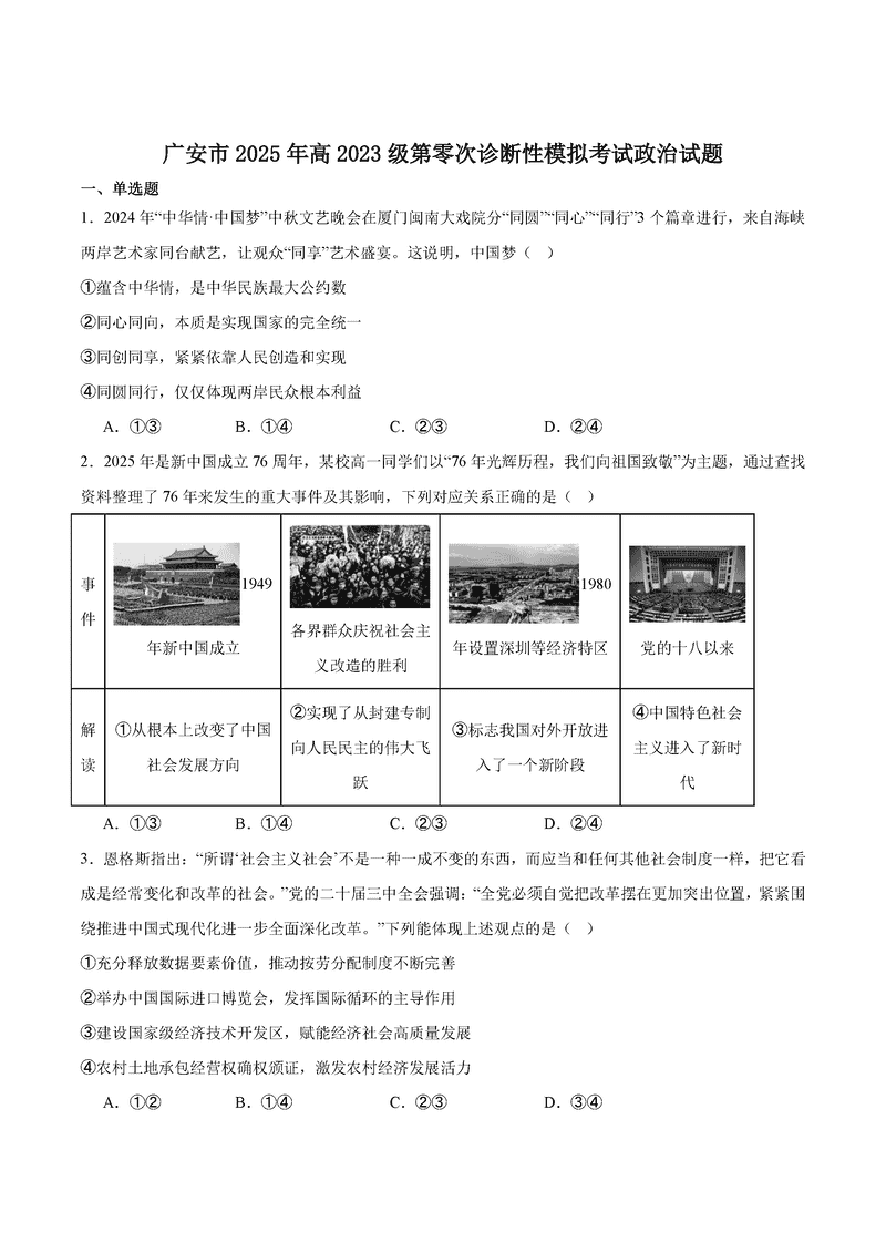 字节教育(广安、雅安、简阳市)2025年2023级零诊模拟政治试题及答案