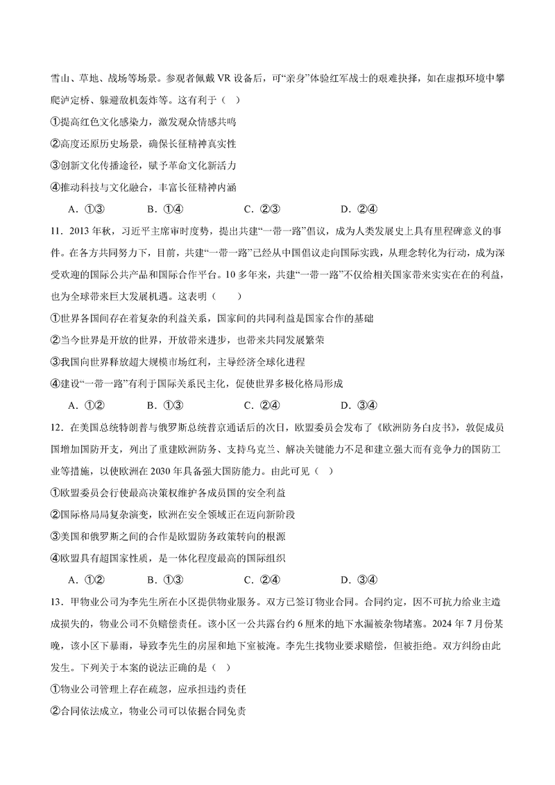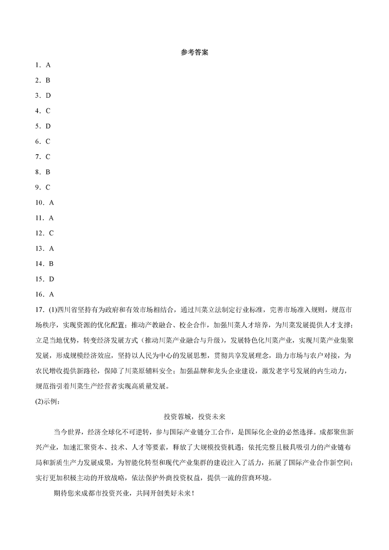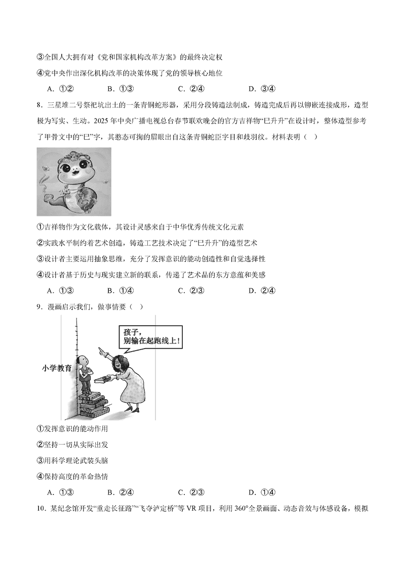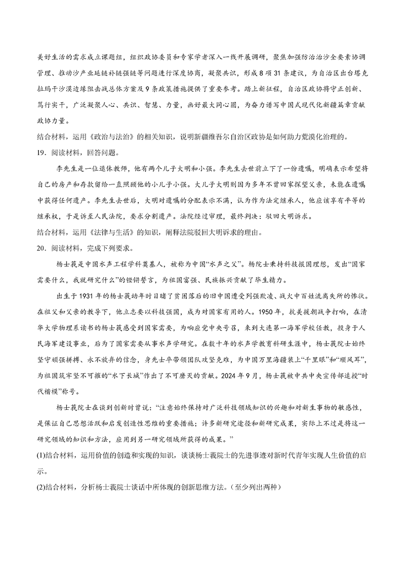 字节教育(广安、雅安、简阳市)2025年2023级零诊模拟政治试题及答案