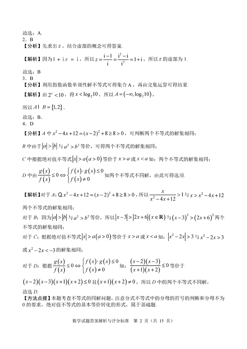数学试题及答案解析