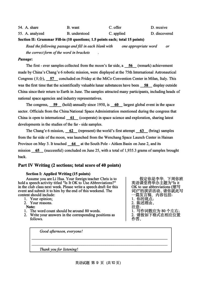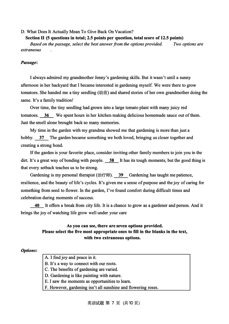 字节教育(广安、雅安、简阳市)2025年2023级零诊模拟英语试题及答案