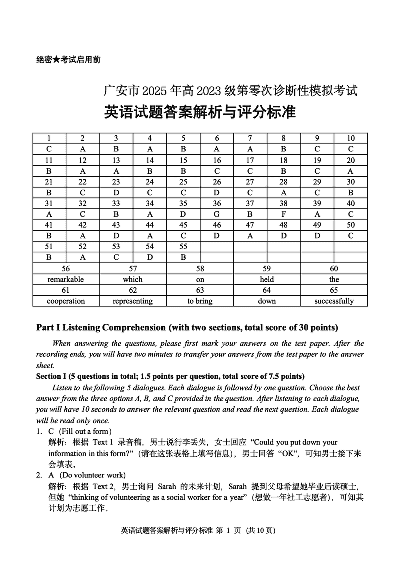 四川省字节教育(广安、雅安、简阳市)2025年高2023级第零次诊断性模拟英语考试已于近日开考,为方便考生考后及时查看考试情况,查漏补缺、弥补不足,本文整理了试题答案解析相关信息!