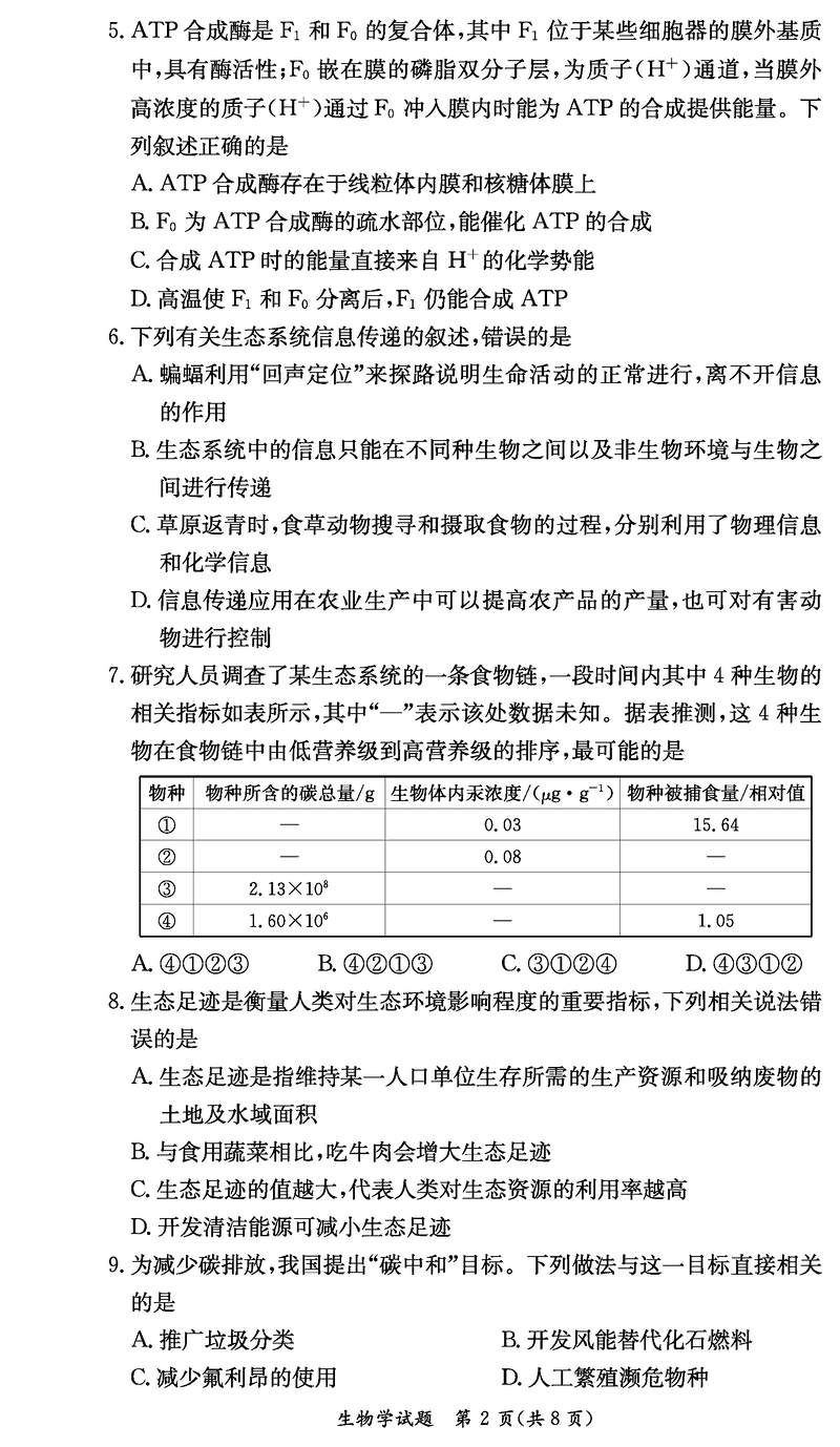 湖南新高考教学教研联盟暨长郡二十校联盟2025年高二下学期期末生物试题及答案