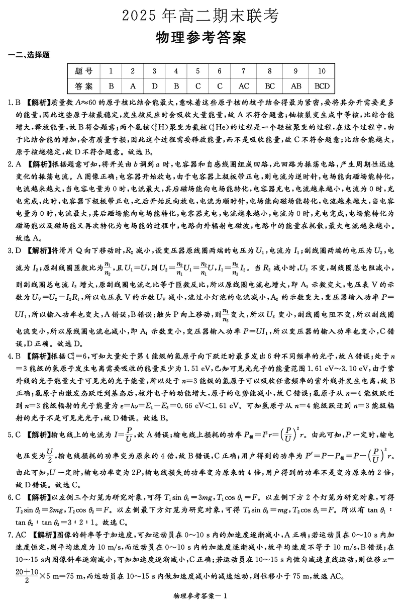 湖南新高考教学教研联盟暨长郡二十校联盟2025年高二下学期期末物理试题及答案
