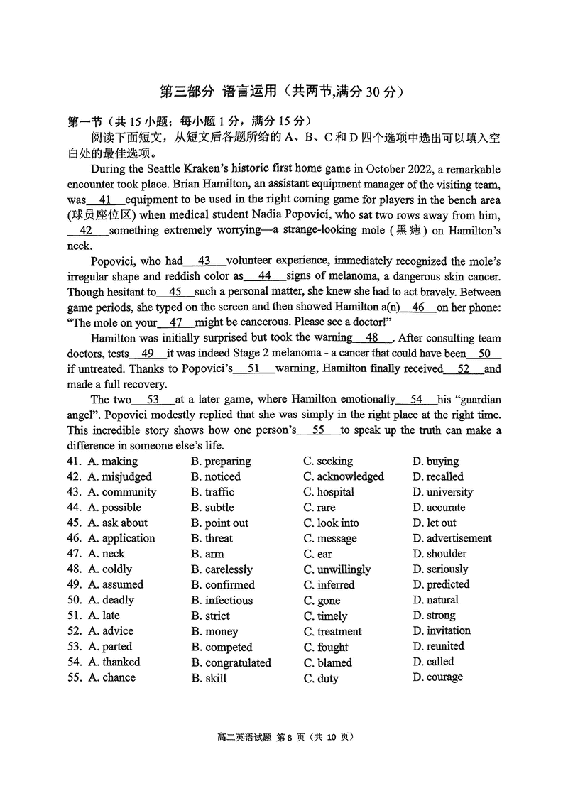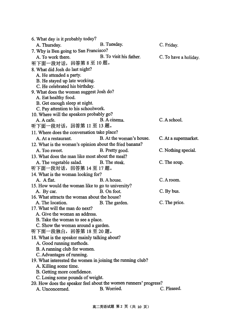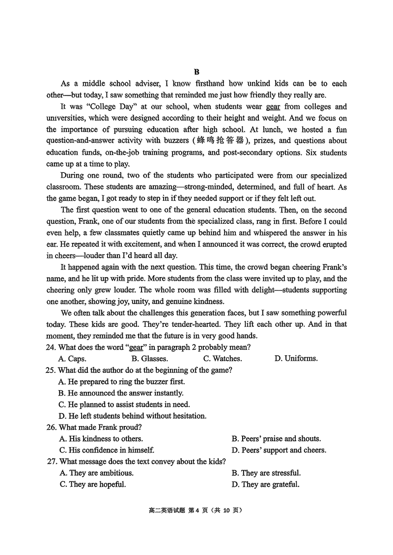 四川达州2025年高二春季教学质量监测英语试题及答案 时间:2025-07-08 四川 高中英语 四川省达州市2025年普通高二年级春季学期教学质量监测英语考试已于近日开考,为方便考生考后及时查看考试情况,查漏补缺、弥补不足,本文整理了试题答案解析相关信息! 英语试题及答案解析
