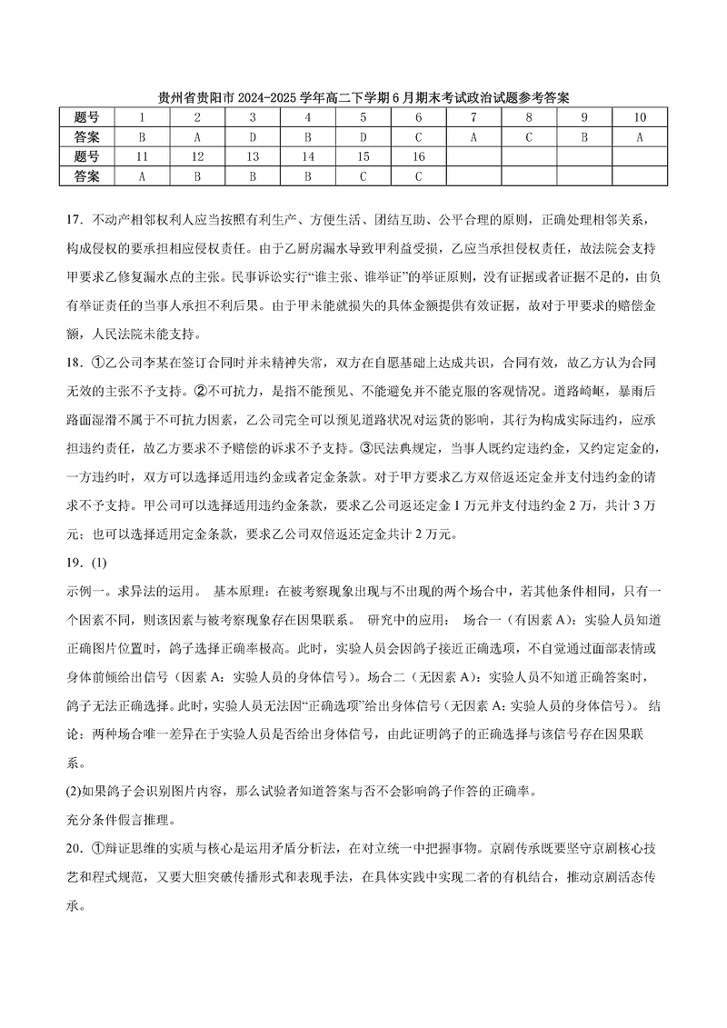 贵阳市2024-2025学年高二下学期6月期末政治试题及答案 时间:2025-07-08 贵州 高中政治 贵州省贵阳市2024-2025学年高二下学期6月期末政治考试已于近日开考,为方便考生考后及时查看考试情况,查漏补缺、弥补不足,本文整理了试题答案解析相关信息! 政治试题及答案解析