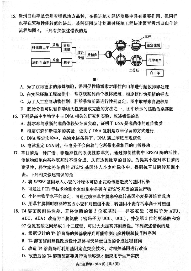 贵阳市2024-2025学年高二下学期6月期末生物试题及答案 时间:2025-07-08 贵州 高中生物 贵州省贵阳市2024-2025学年高二下学期6月期末生物考试已于近日开考,为方便考生考后及时查看考试情况,查漏补缺、弥补不足,本文整理了试题答案解析相关信息! 生物试题及答案解析