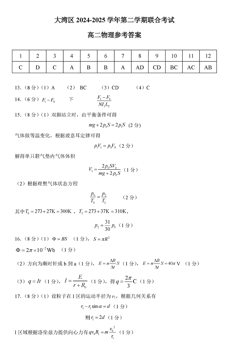 广东大湾区2024-2025学年高二下学期期末物理试题及答案 时间:2025-07-09 广东 高中物理 广东省大湾区2024-2025学年高二下学期期末统一测试物理考试已于近日开考,为方便考生考后及时查看考试情况,查漏补缺、弥补不足,本文整理了试题答案解析相关信息! 物理试题及答案解析