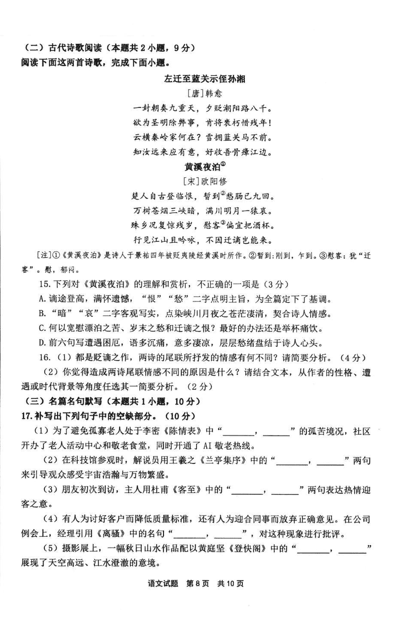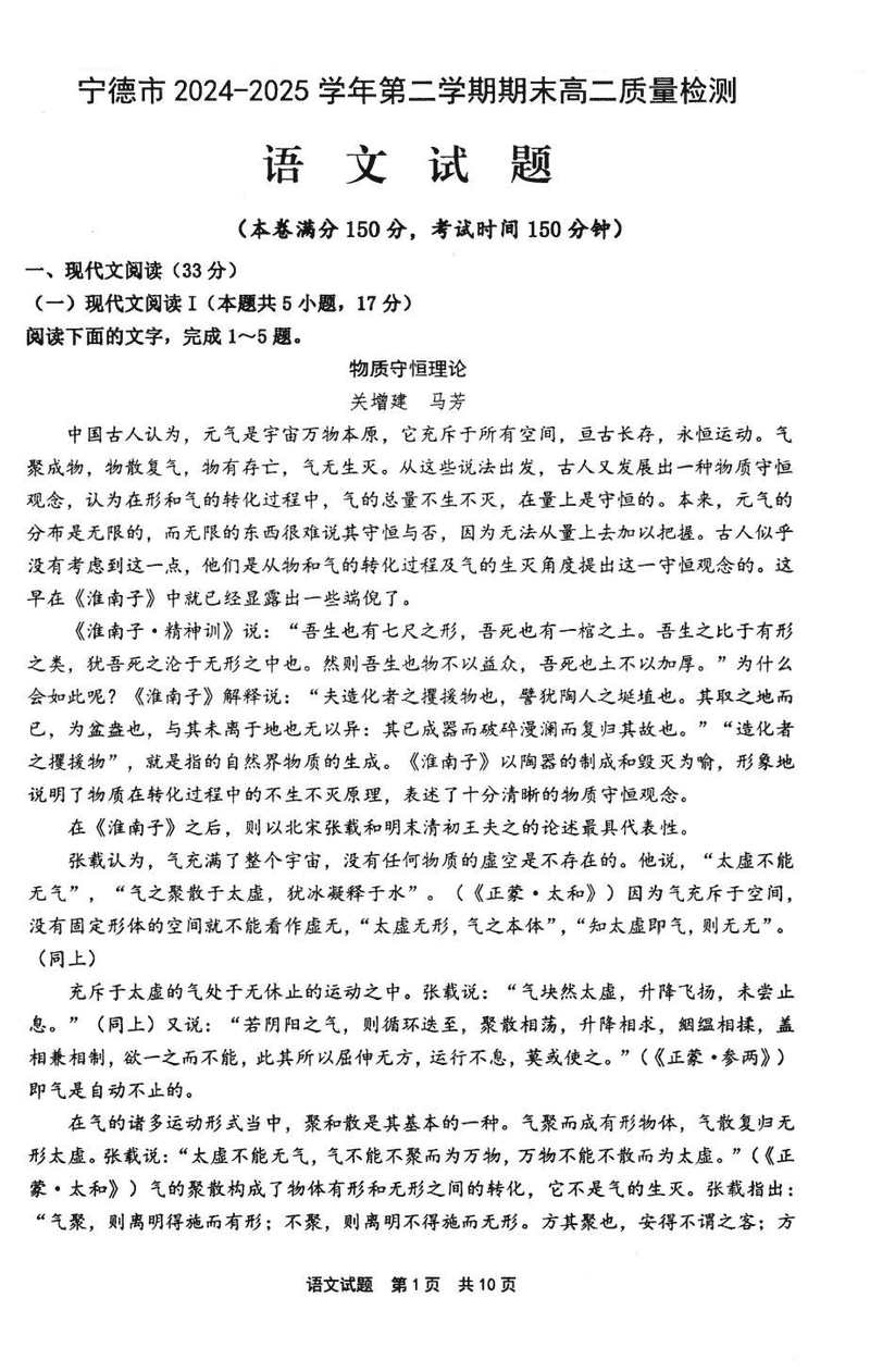 宁德市2024-2025学年高二下学期6月期末语文试题及答案 时间:2025-07-09 福建 高中语文 福建省宁德市2024-2025学年高二下学期6月期末质量检测语文考试已于近日开考,为方便考生考后及时查看考试情况,查漏补缺、弥补不足,本文整理了试题答案解析相关信息! 语文试题及答案解析