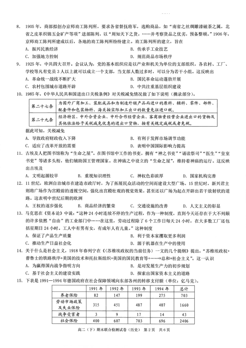 重庆康德教育2025年高二下期末联合检测历史试题及答案 时间:2025-07-10 重庆 高中历史 重庆康德教育2025年高二下期末联合检测历史考试已于近日开考,为方便考生考后及时查看考试情况,查漏补缺、弥补不足,本文整理了试题答案解析相关信息! 历史试题及答案解析