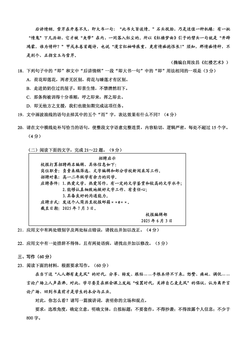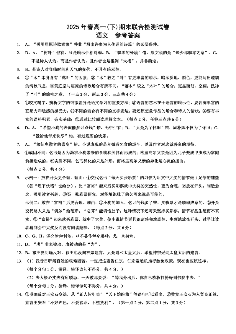 重庆康德教育2025年高一下期末联合检测语文试题及答案 时间:2025-07-10 重庆 高中语文 重庆康德教育2025年高一下期末联合检测语文考试已于近日开考,为方便考生考后及时查看考试情况,查漏补缺、弥补不足,本文整理了试题答案解析相关信息! 语文试题及答案解析