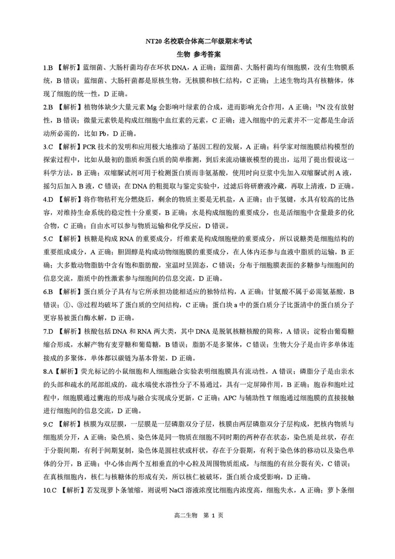 河北省NT20名校联合体2024-2025学年高二下学期7月期末生物考试已于近日开考,为方便考生考后及时查看考试情况,查漏补缺、弥补不足,本文整理了试题答案解析相关信息!