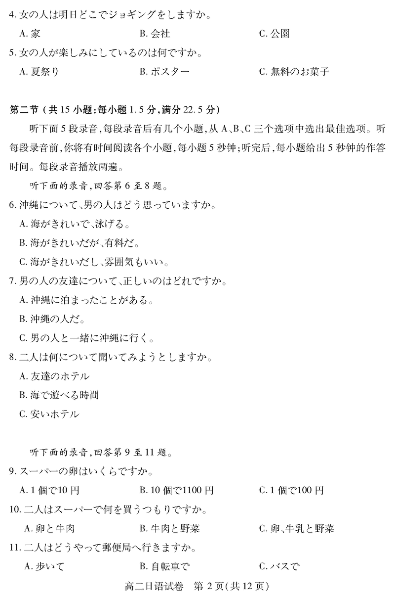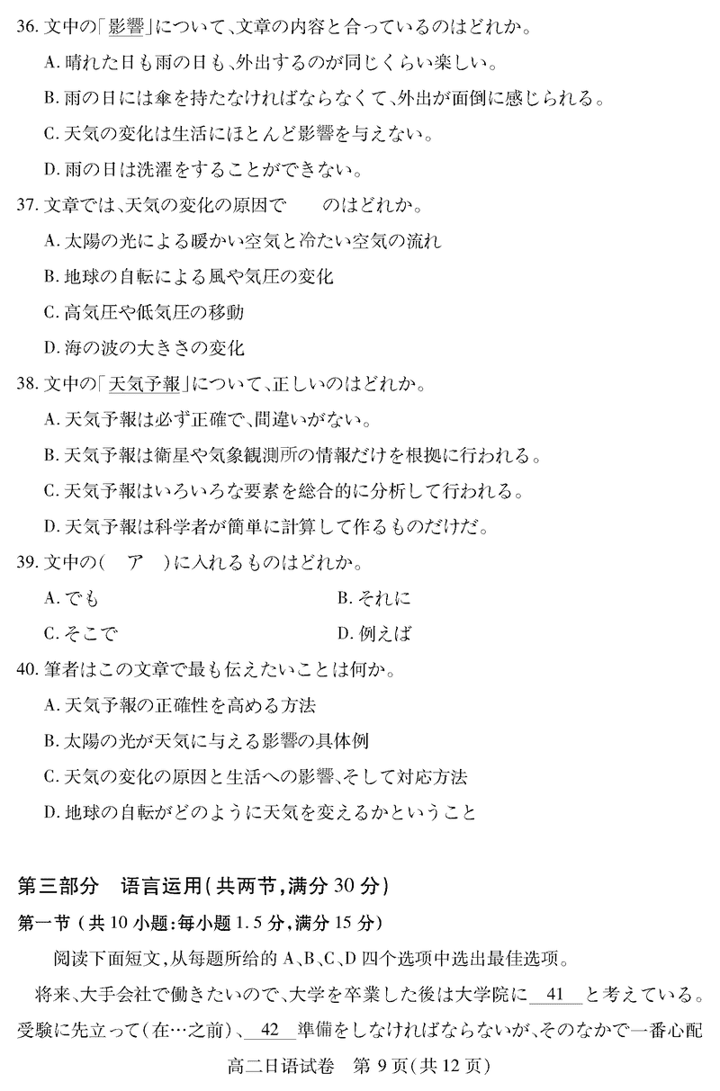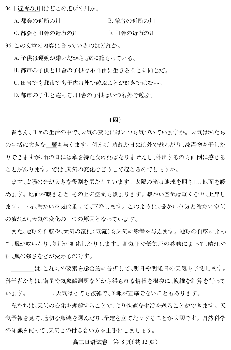襄阳市2025年7月高二期末统测日语试题及答案 时间:2025-07-18 湖北 英语试题 湖北省襄阳市2025年7月高二期末统测日语考试已于近日开考,为方便考生考后及时查看考试情况,查漏补缺、弥补不足,本文整理了试题答案解析相关信息! 汇总:湖北省襄阳市2025年7月高二期末统测 日语试题及答案解析