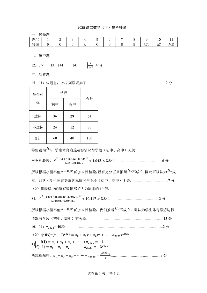 襄阳市2025年7月高二期末统测数学试题及答案 时间:2025-07-18 湖北 数学试题 湖北省襄阳市2025年7月高二期末统测数学考试已于近日开考,为方便考生考后及时查看考试情况,查漏补缺、弥补不足,本文整理了试题答案解析相关信息! 汇总:湖北省襄阳市2025年7月高二期末统测 数学试题及答案解析