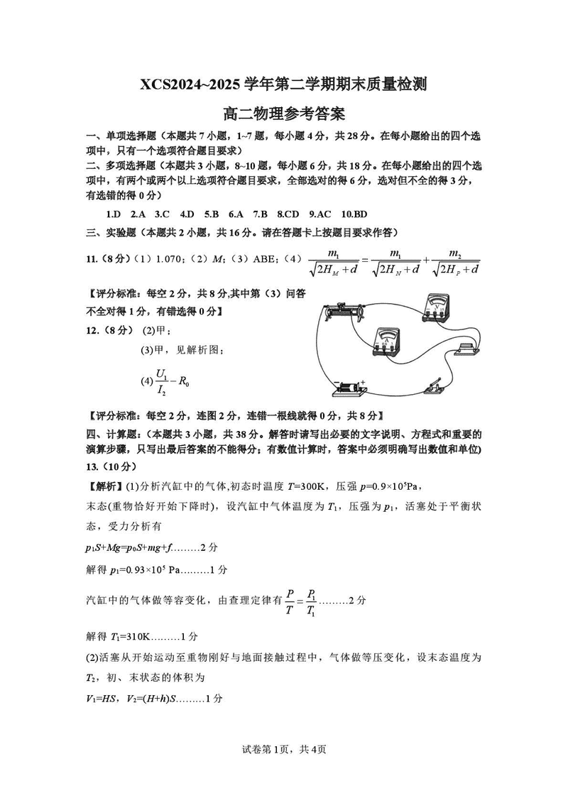 许昌市2024-2025学年高二下学期7月期末物理试题及答案 时间:2025-07-18 河南 理综试题 河南省许昌市2024-2025学年高二下学期7月期末物理考试已于近日开考,为方便考生考后及时查看考试情况,查漏补缺、弥补不足,本文整理了试题答案解析相关信息! 汇总:许昌市2024-2025学年高二下学期7月期末 物理试题及答案解析