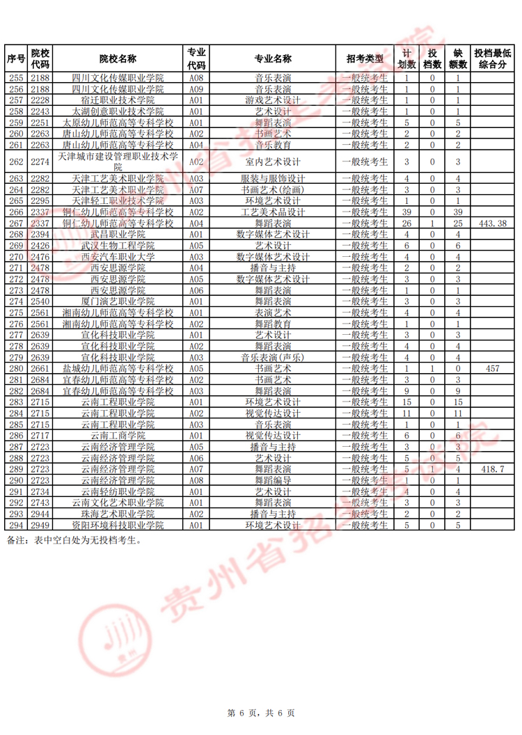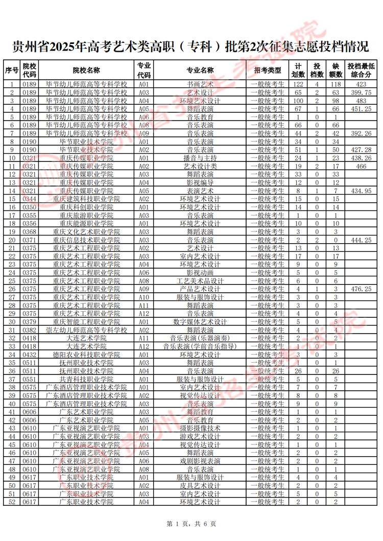 贵州省2025年高考艺术类高职(专科)批第2次征集志愿投档情况已发布,具体内容如下: