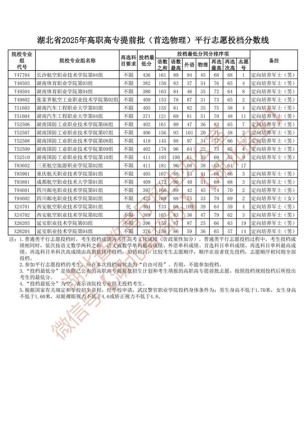 湖北省2025年高职高专提前批(首选物理)平行志愿投档分数线已发布,具体内容如下:
