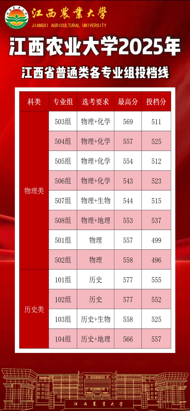 江西农业大学2025年江西省普通类各专业组投档线公布,具体内容如下:
