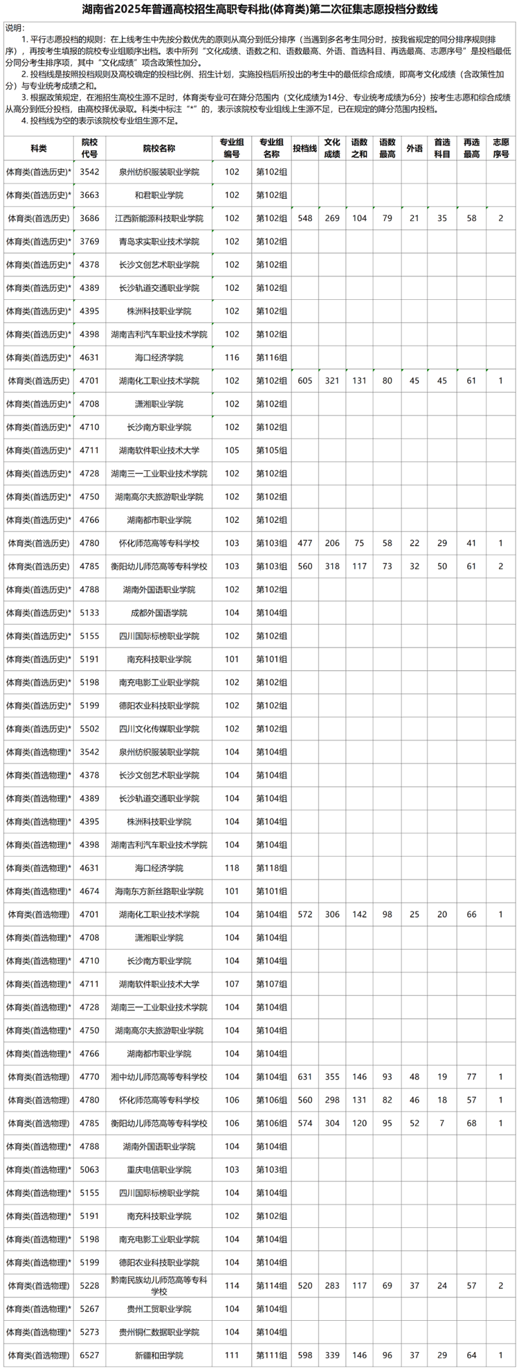 湖南省2025年普通高校招生高职专科批(体育类)第二次征集志愿投档分数线 时间:2025-08-20 湖南 高考新闻 湖南省2025年普通高校招生高职专科批(体育类)第二次征集志愿投档分数线已发布,具体内容如下: