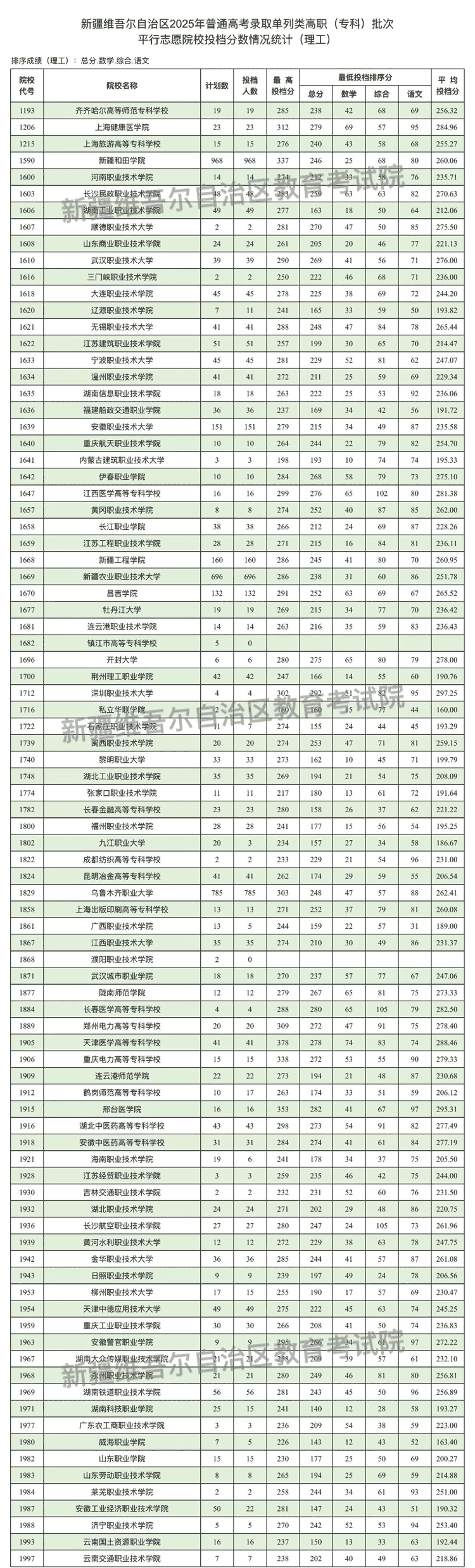 新疆维吾尔自治区2025年普通高校招生单列类高职(专科)批次投档情况 时间:2025-08-20 新疆 高考新闻 新疆维吾尔自治区2025年普通高校招生单列类高职(专科)批次投档情况已发布,具体内容如下: