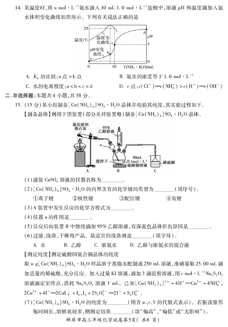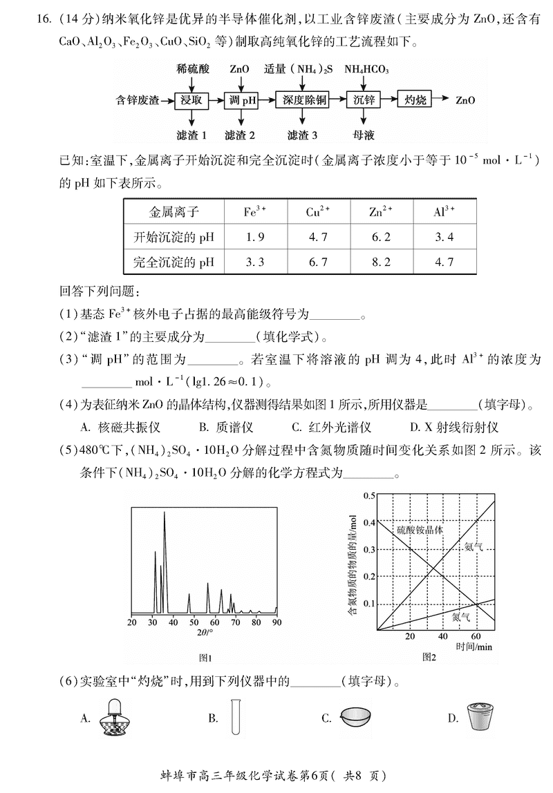 蚌埠市2026届高三上学期调研性监测化学试题及答案 时间:2025-08-30 安徽 理综试题 安徽蚌埠市2026届高三上学期调研性监测化学考试已于近日开考,为方便考生考后及时查看考试情况,查漏补缺、弥补不足,本文整理了试题答案解析相关信息! 汇总:蚌埠市2026届高三上学期调研性监测试题及答案汇总 化学试题及答案解析