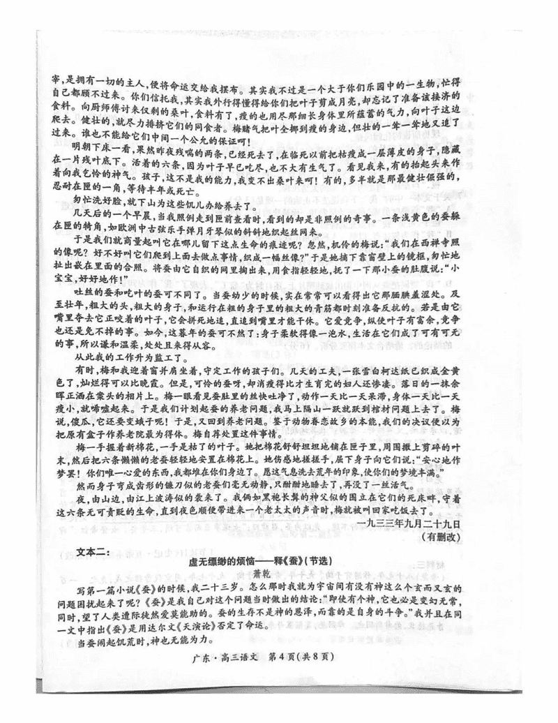 广东上进联考2025-2026学年新高三秋季入学考语文试题及答案