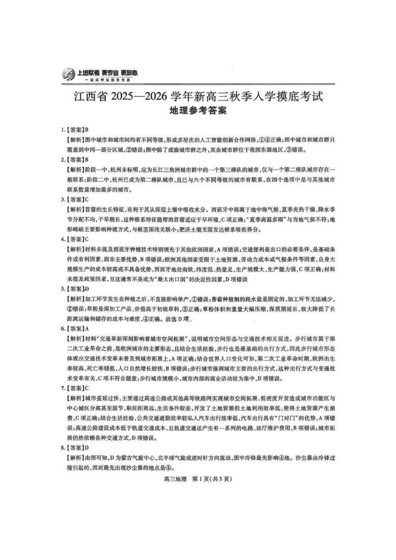 江西省上进联考2025-2026学年新高三秋季入学摸底地理考试已于近日开考,为方便考生考后及时查看考试情况,查漏补缺、弥补不足,本文整理了试题答案解析相关信息!