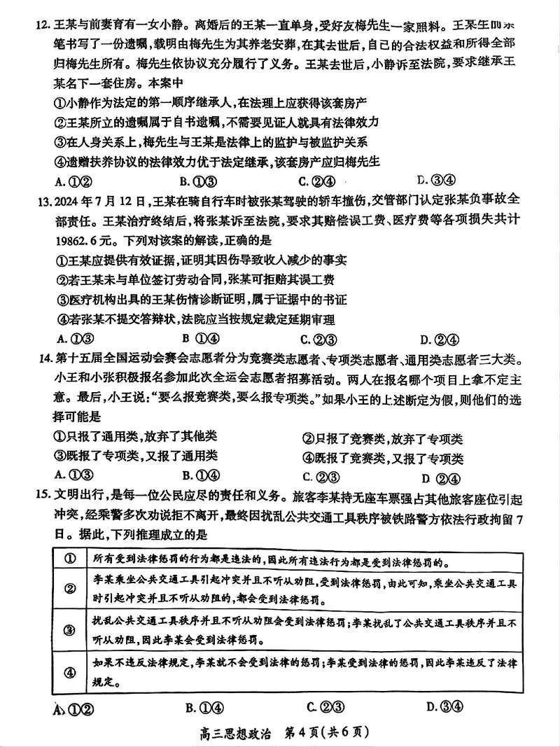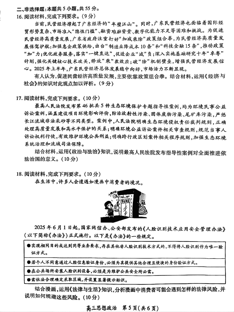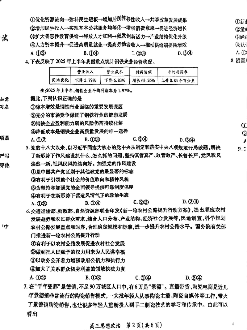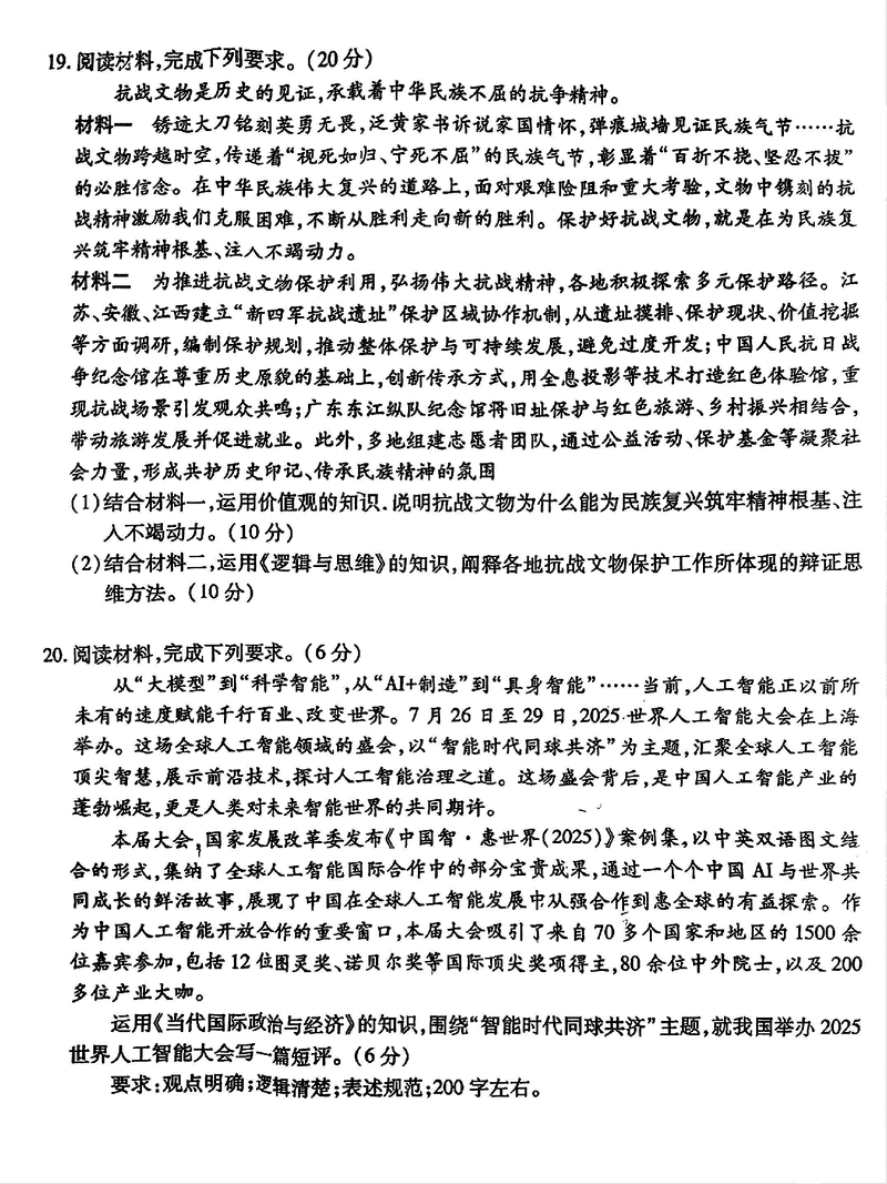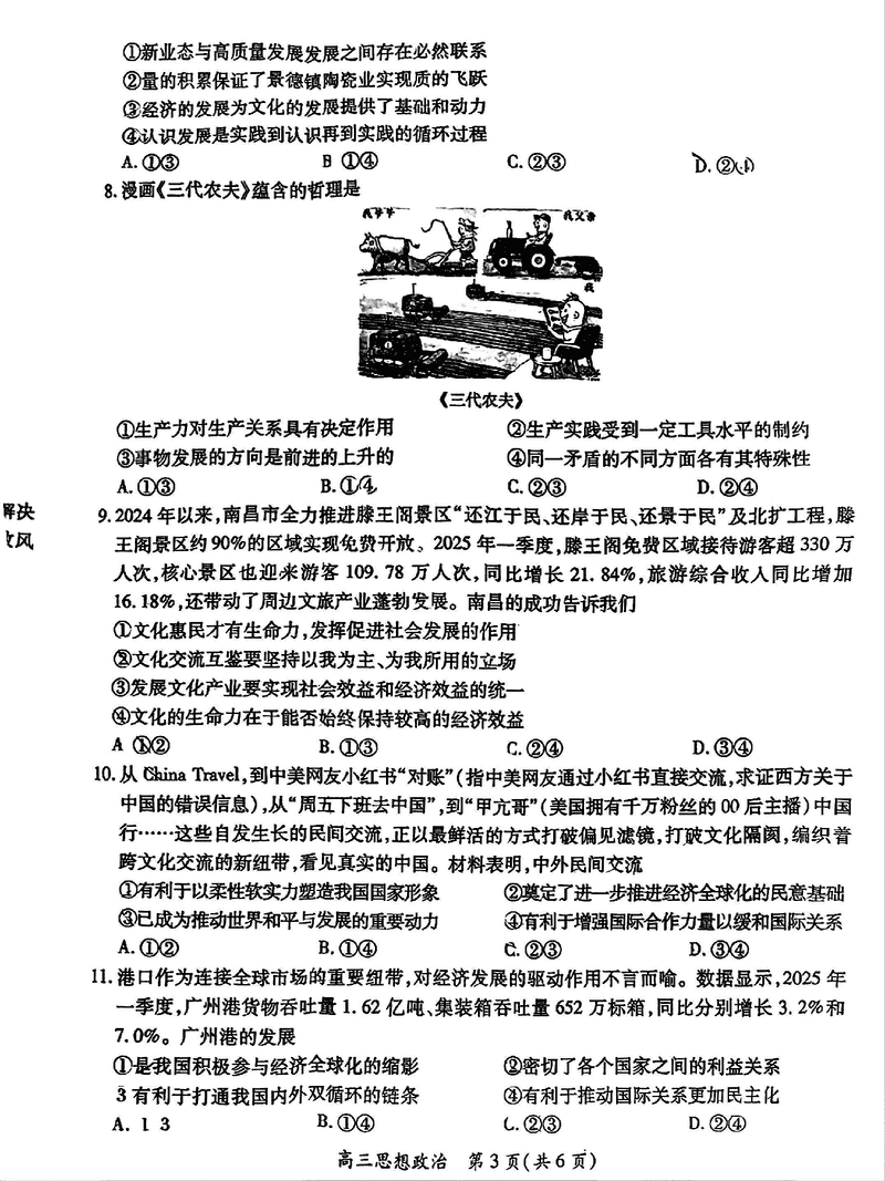 江西上进联考2025-2026学年新高三秋季入学摸底考政治试题及答案