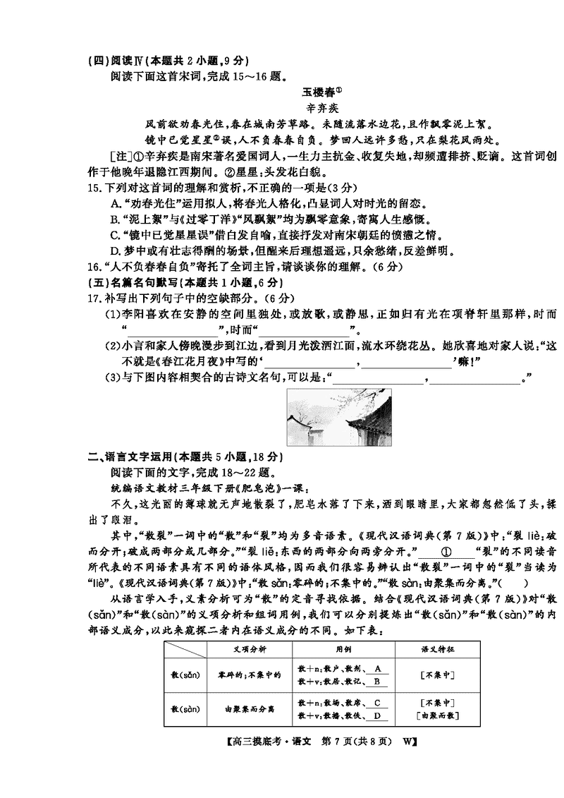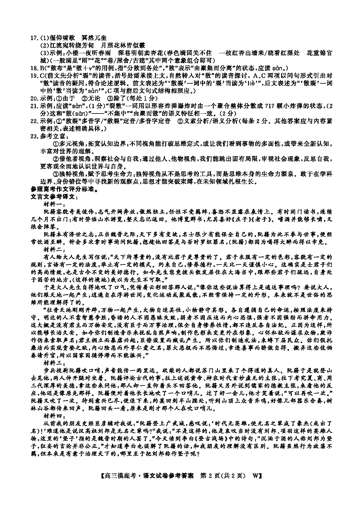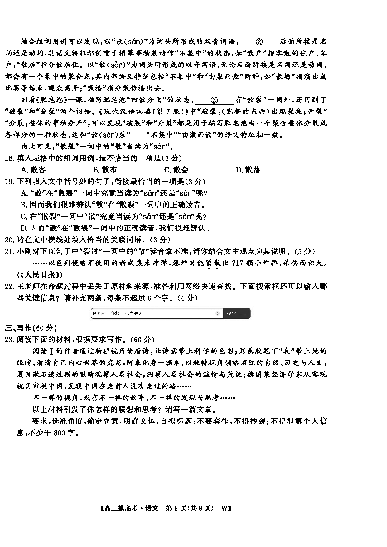 皖南八校2026届高三上学期8月摸底大联考语文试题及答案