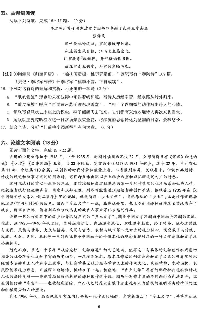 南京市六校联合体2026届高三上学期8月学情调研语文试题及答案