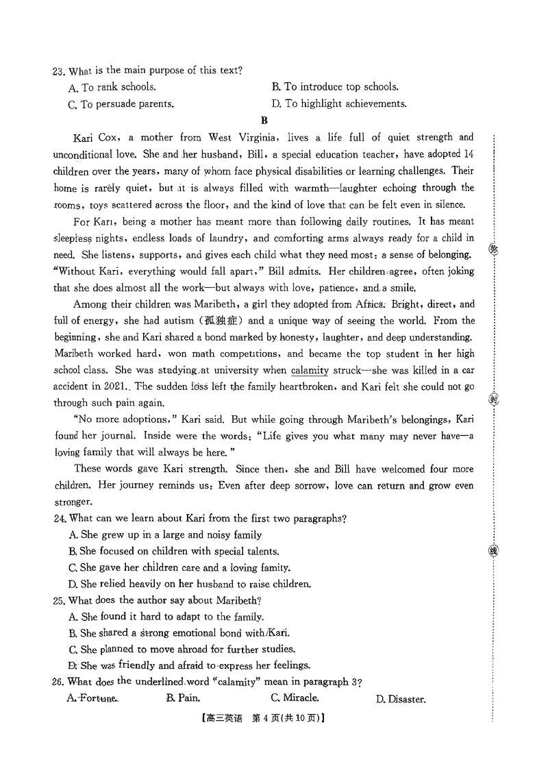 皖西南高中振兴发展联盟2026届高三起点考英语试题及答案